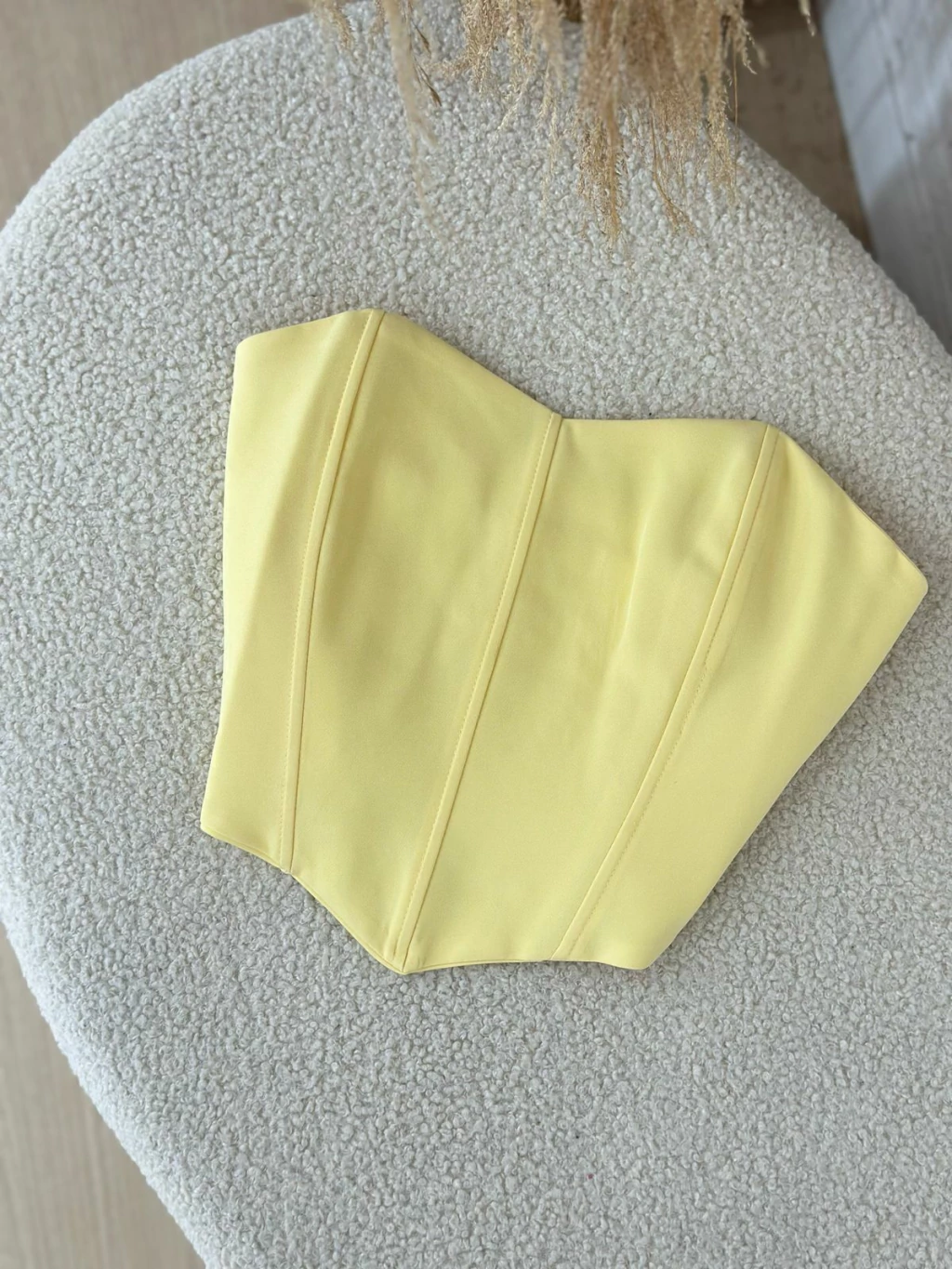 - CROPPED EM TECIDO DE ALFAIATARIA, SEM BOJO COM ELASTEX NAS COSTAS.