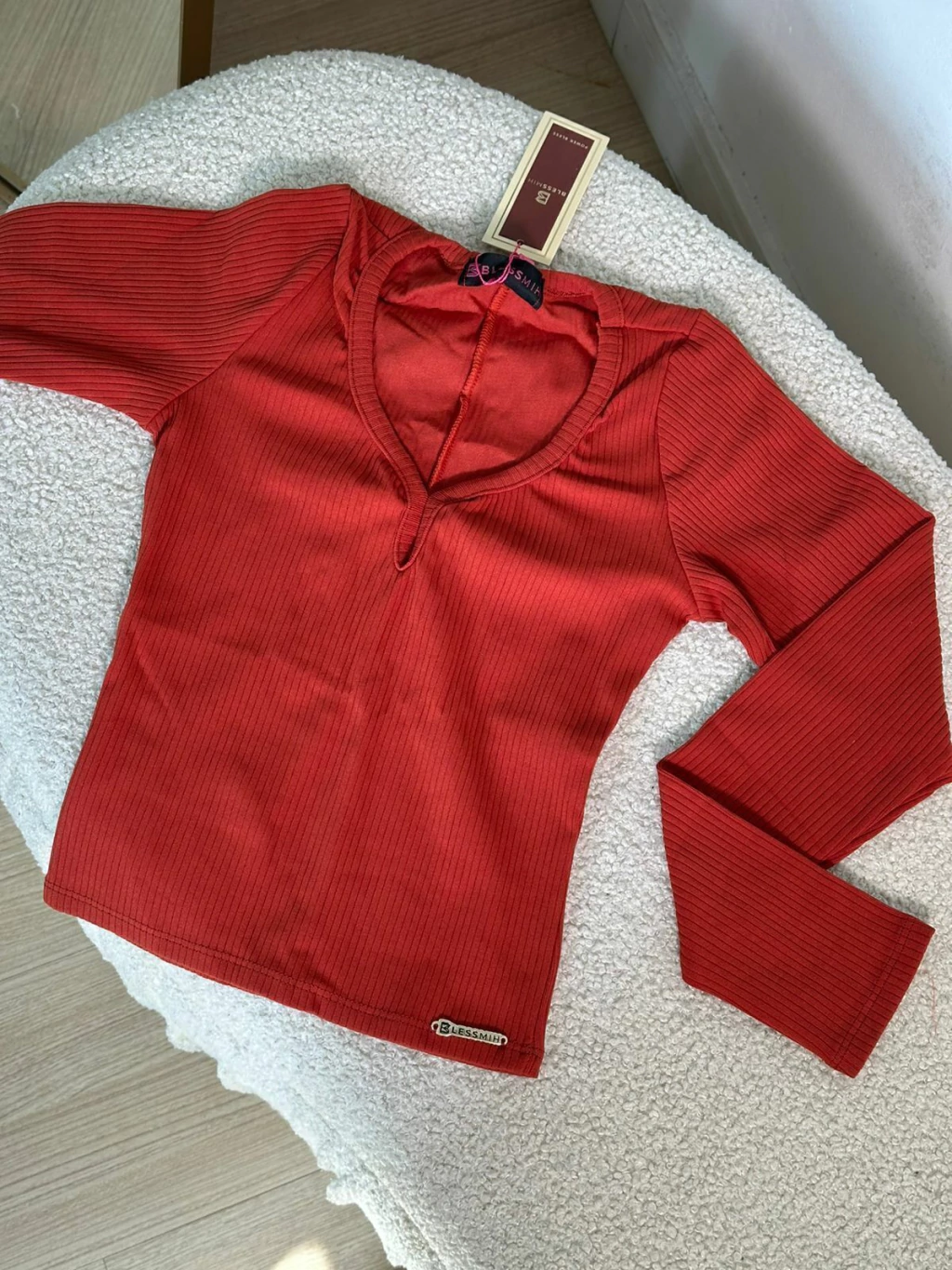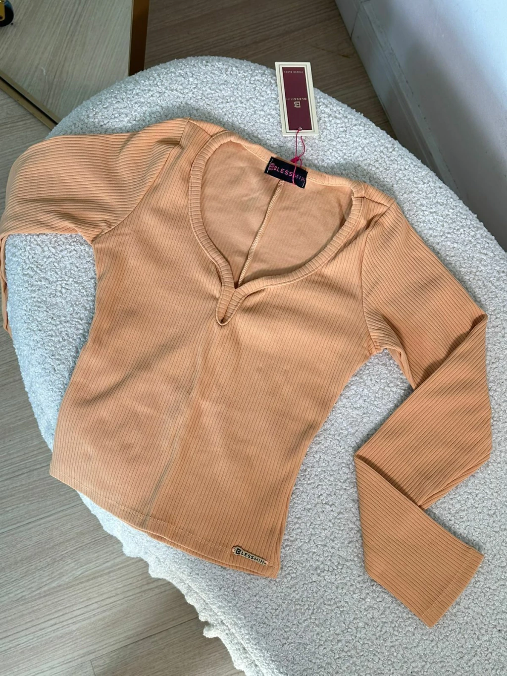 - CROPPED MARCA BLESSMIH EM TECIDO CANELADO, SEM BOJO.