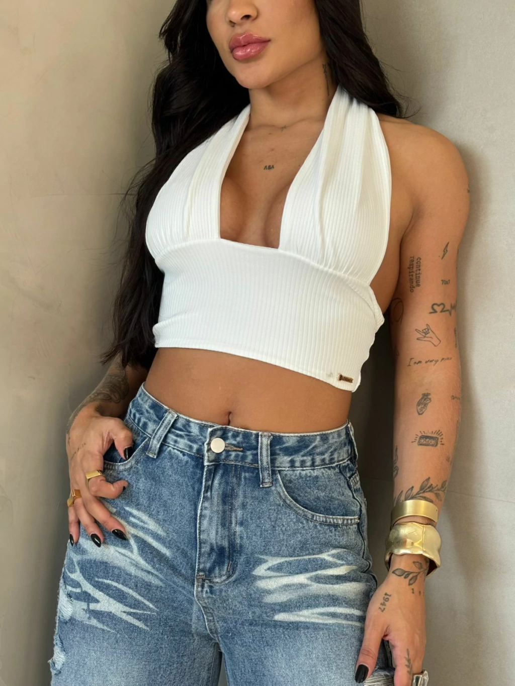 - CROPPED EM TECIDO CANELADO POWER, SEM BOJO, COM COSTAS NUA.
