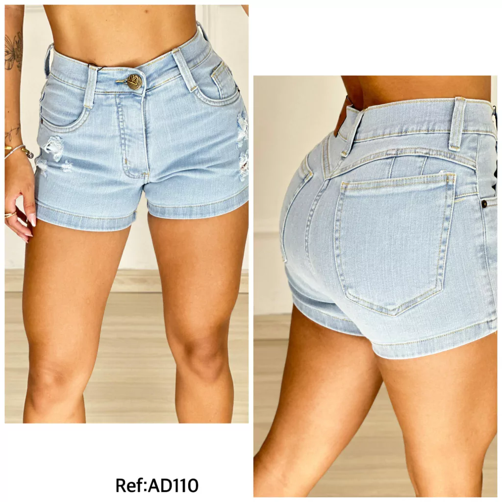 – SHORT JEANS MARCA BLESSMIH, COM LYCRA, BOLSOS LATERAIS E TRASEIROS.