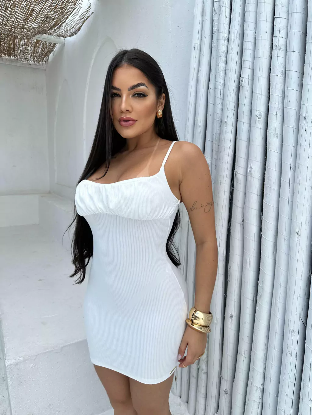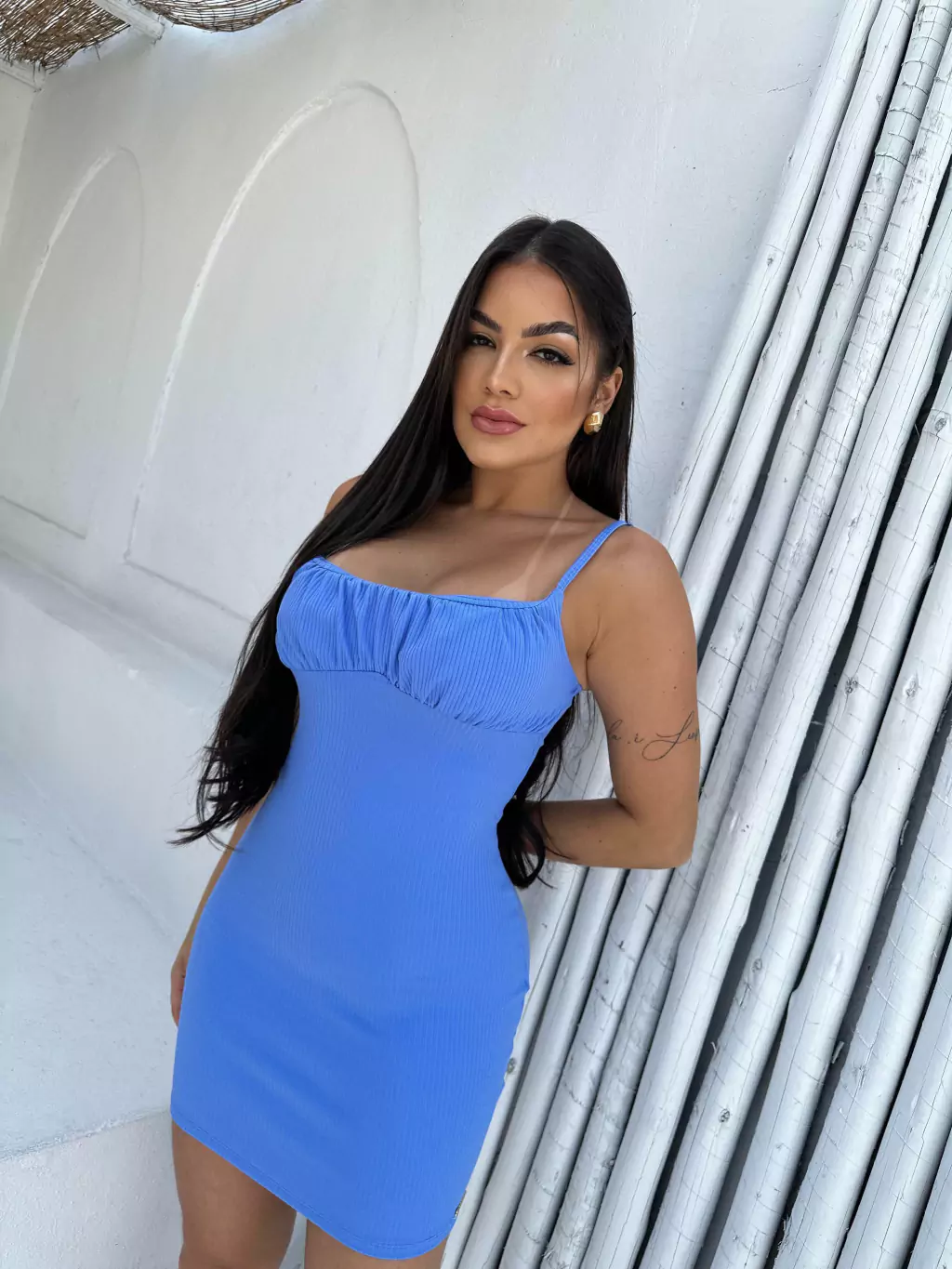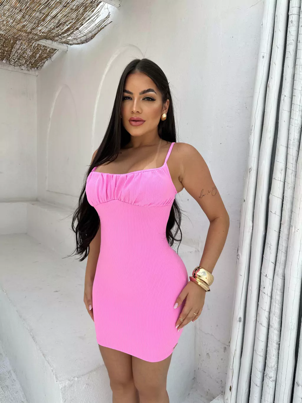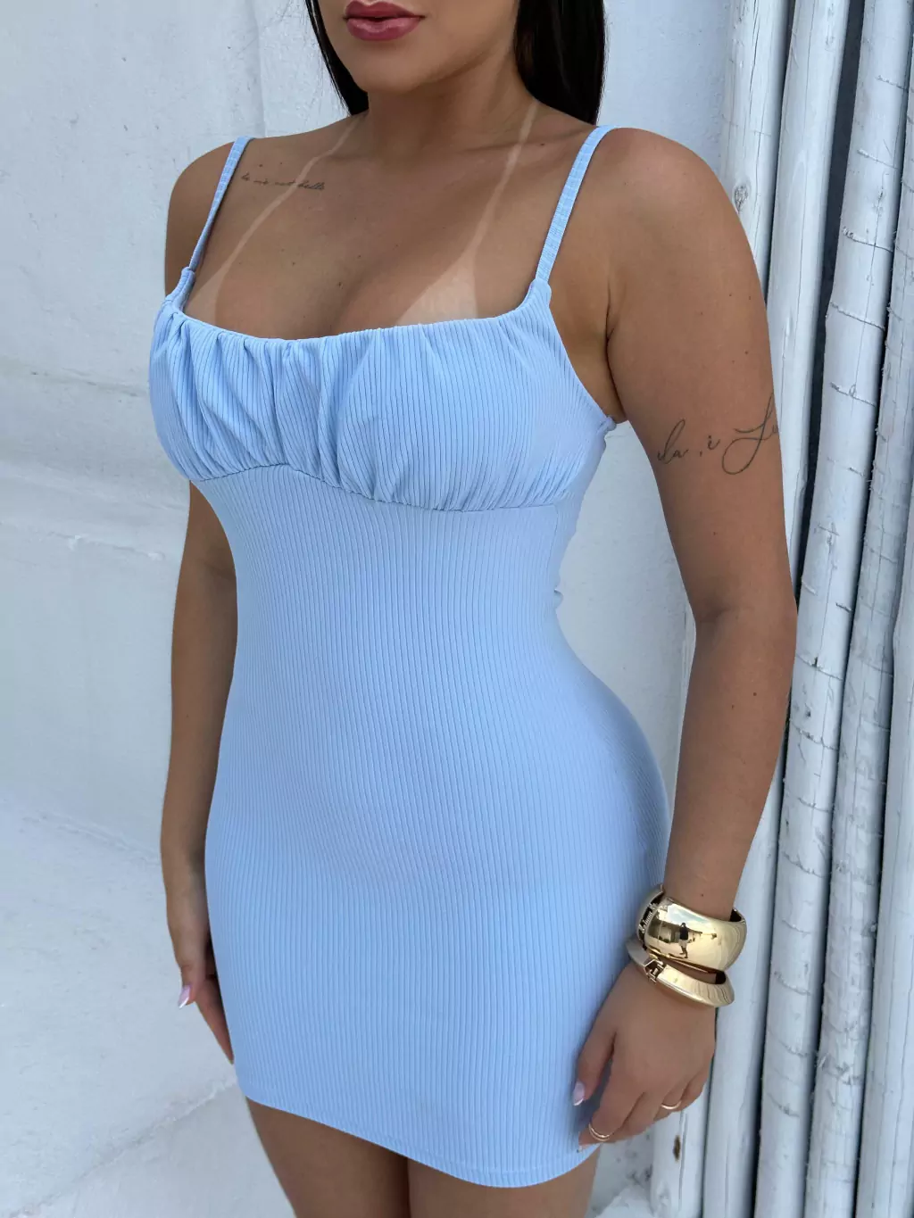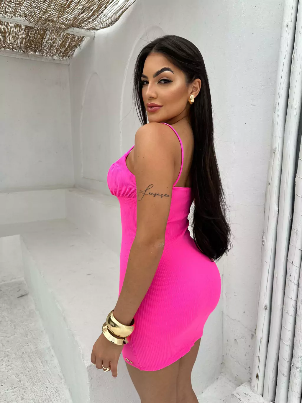 - VESTIDO EM TECIDO CANELADO POWER, SEM BOJO E ALÇA ÚNICA.
