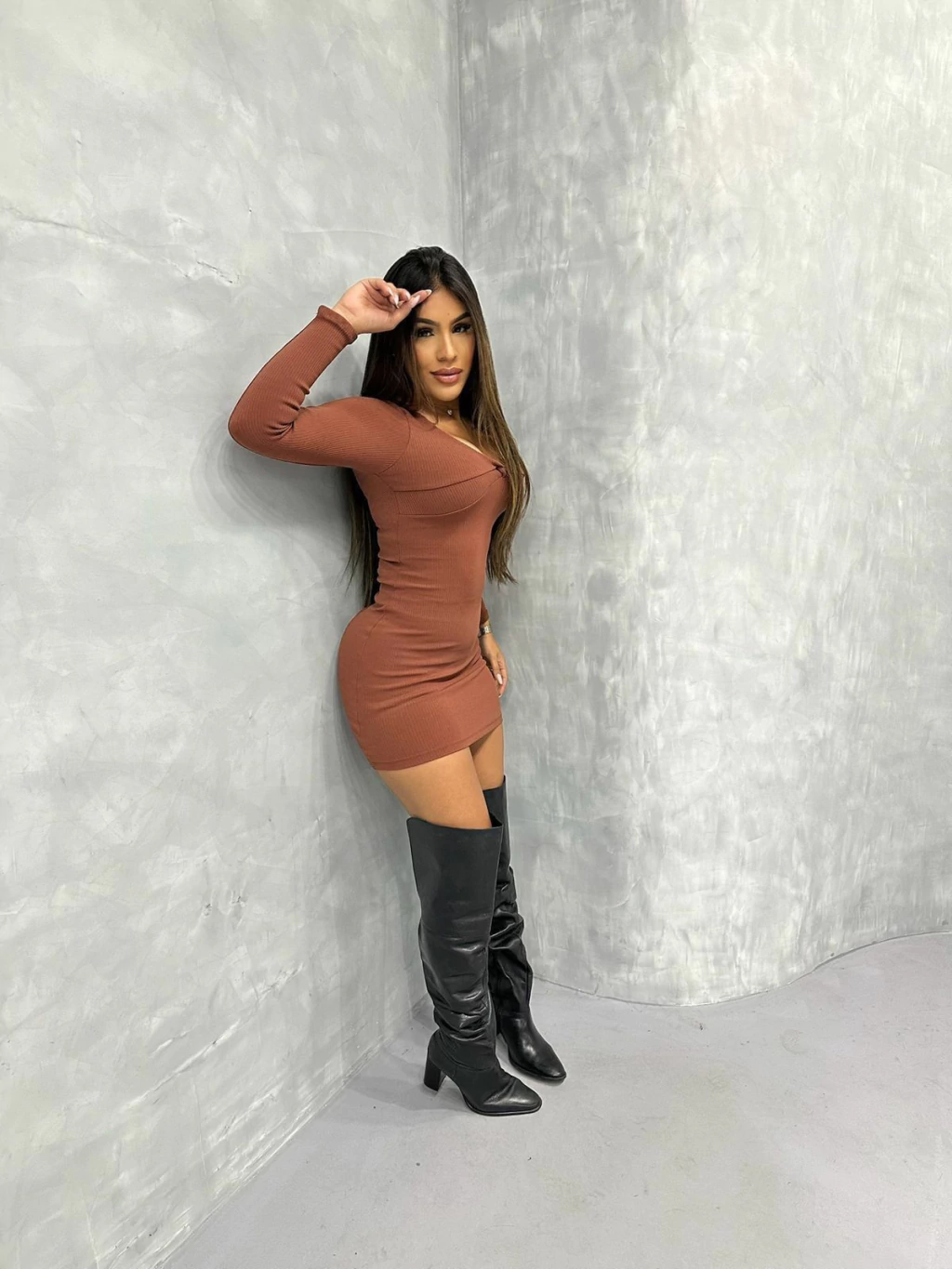 - VESTIDO EM TECIDO CANELADO POWER, SEM BOJO.